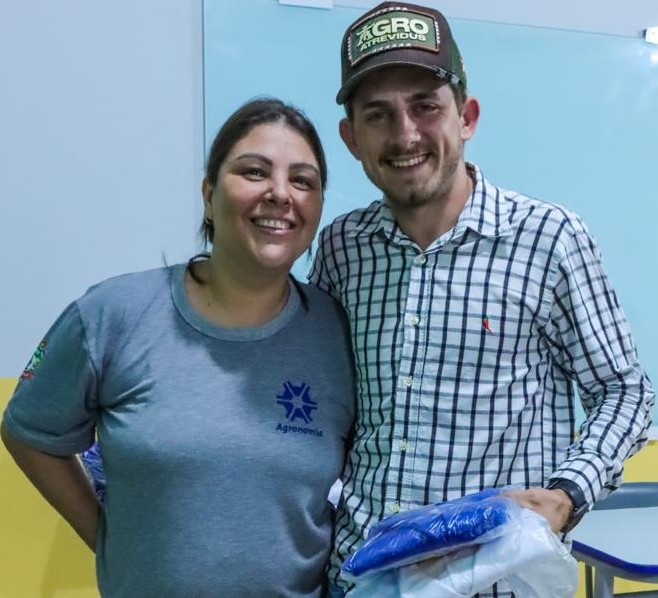 Ainda de acordo com o prefeito Edemilson Marino, na oportunidade, foram entregues quarenta e cinco jalecos, que serão utilizados no laboratório e, também cinquenta camisetas, para uso em sala de aulas.